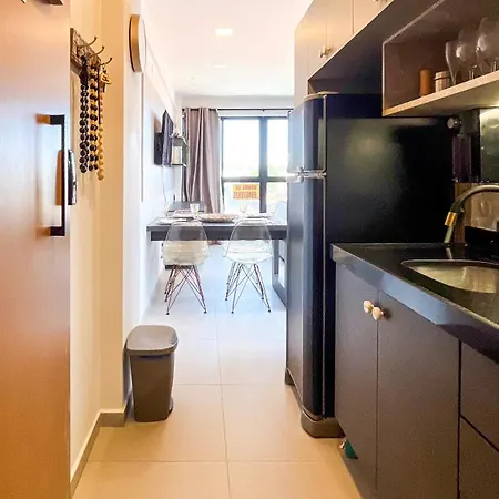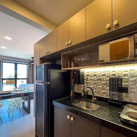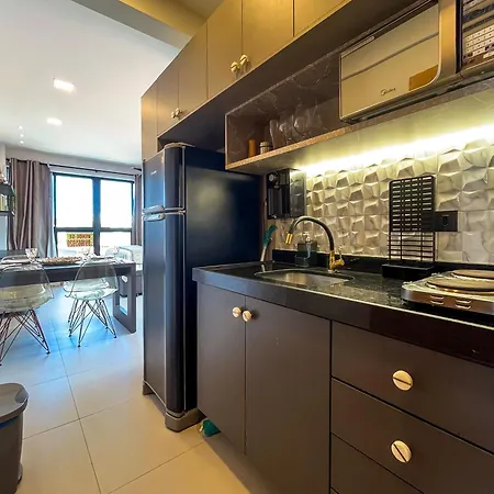 Con una cocina como parte de sus instalaciones de autoservicio, el Flat Moderno com Piscina na cobertura em Porto de Galinhas para até 5 pessoas también ofrece a sus huéspedes un comedor al aire libre para disfrutar de sus comidas. El apartamento está situado a 50 km del aeropuerto Recife.