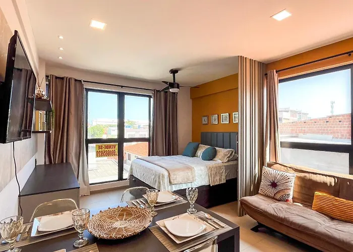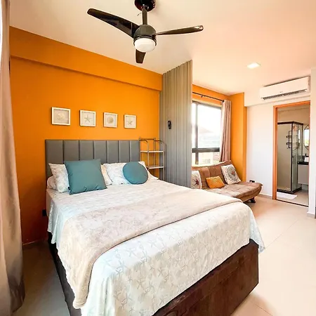 El Flat Moderno com Piscina na cobertura em Porto de Galinhas para até 5 pessoas Pôrto das Galinhas se encuentra en una zona de playa, a unos 10 minutos en coche del Lago Natural y a 2 km de la Playa de Muro Alto. Disfrutar de acceso a la piscina asegura una estancia más relajante.